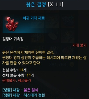 채광 30렙 스킬인 채광 폭탄을 사용하면 붉은 결정을 얻을 수 있습니다.