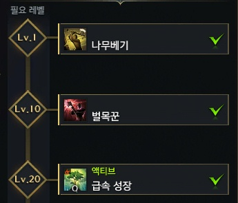 급속 성장 스킬(벌목 20 렙)을 쓰면